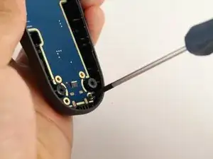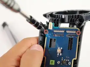 Используйте отвёртку Phillips 00, чтобы вынуть два чёрных винта длиной 2,8 мм из серебряной пластины.