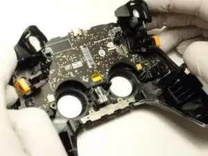 Удалите защитный элемент, который фиксирует стики на контроллере.