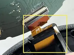 После снятия винтов аккуратно поднимите плату подсветки и отсоедините ленточный кабель.