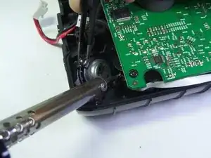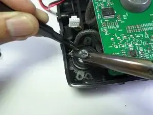 Отпаяйте чёрный соединительный провод паяльником.