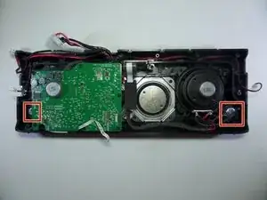 Снимите чёрную пластиковую панель винтов с бумбокса.