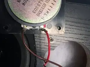 После снятия динамика отключите красные и коричневые провода от динамика.