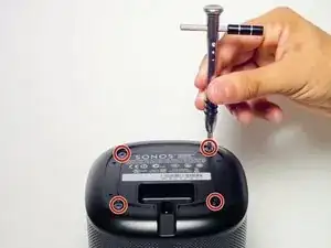 Используя бит Torx T20, снимите четыре винта длиной 13 мм, крепящие динамик к корпусу.