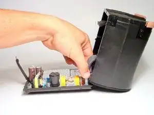 С помощью пластикового инструмента для вскрытия подденьте верхнюю крышку, содержащую кнопку питания и регулятор громкости.