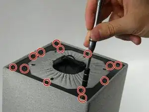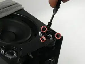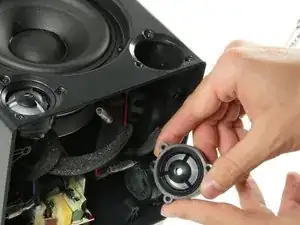 Используйте отвертку Phillips #0, чтобы удалить три черных винта, крепящих твитер к корпусу.