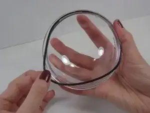 Осторожно растяните новое уплотнительное кольцо и поместите его на место на прозрачной крышке. Убедитесь, что оно лежит по уровню с фланцем и не мешает резьбе для фиксации.