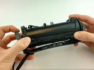 Обратите внимание на три направляющих штифта на внутренней части корпуса и аккуратно совместите их, полностью вставив штифты в приёмники на шасси.