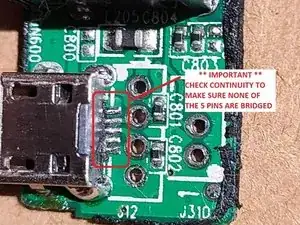 Запаяйте новый USB-порт (5 контактов и 4 монтажные лапки)