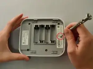После удаления всех пяти винтов разделите корпус, аккуратно надавливая вверх на положительные контакты в отсеке для батарей.