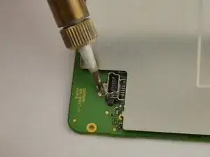 Аккуратно и бережно нагрейте припой, которым USB-порт припаян к печатной плате.