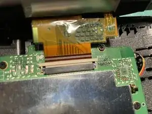 Не пытайтесь отделить экран от нижней части устройства, так как он все еще подключен к базе, и вы можете повредить шлейф.