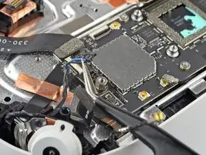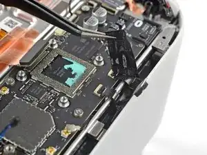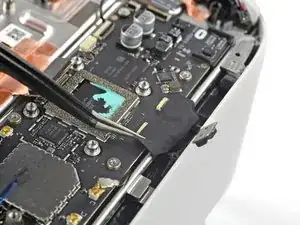 Используйте пинцет, чтобы захватить разъём вентилятора и аккуратно вытащить его из гнезда.