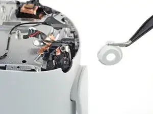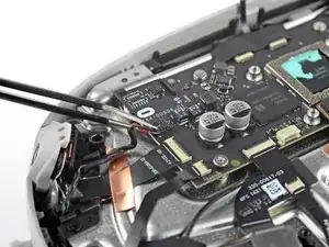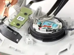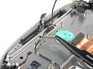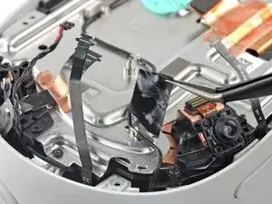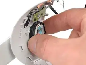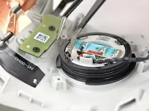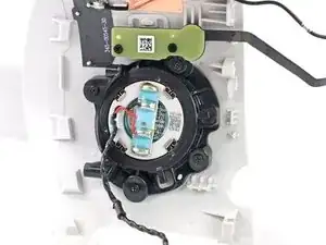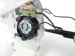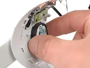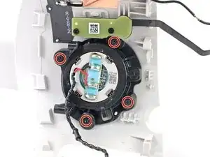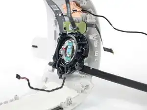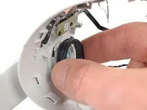 Снятие узла динамика требует значительной разборки гарнитуры. Если аккумулятор изношен, рассмотрите возможность его замены — обычно к нему трудно добраться, но он легкодоступен во время этого ремонта.