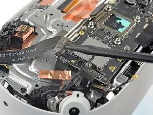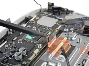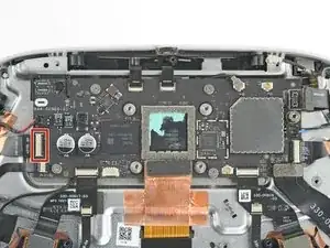 Используйте лопаточку, чтобы приподнять и отсоединить кабель дисплея.