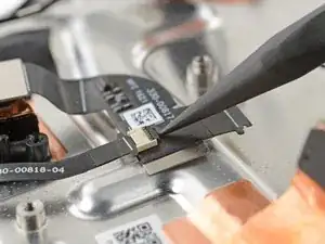 Схватите кабель верхней левой камеры пинцетом и выдвиньте его из ZIF‑разъёма.