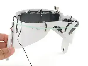 Не пытайтесь полностью снять окантовку окуляра на этом этапе. Она всё ещё соединена с гарнитурой коротким кабелем.