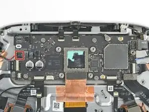 Используйте лопаточку, чтобы поддеть и отключить пружинный разъём батареи от материнской платы.