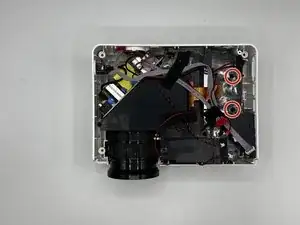 Снимите все шесть винтов длиной 11 мм на основании проектора с помощью отвертки Phillips #1.
