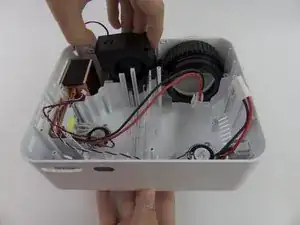 На этом изображении лампа и разъём питания сняты для лучшей видимости, но их не обязательно демонтировать для замены вентилятора.