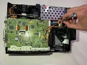 Используйте отвертку Phillips #0, чтобы выкрутить один винт 5.0 мм с крышки лампы на задней панели устройства.