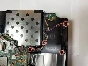С помощью крестовой отвертки Phillips #1 удалите три винта 6 мм, которые крепят боковую часть проектора.