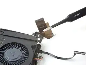 Используйте пинцет, чтобы вытащить разъём кабеля вентилятора из его слота на материнской плате.