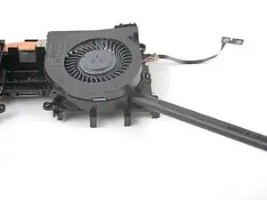 Переверните узел материнской платы так, чтобы вентилятор был обращён вверх.