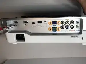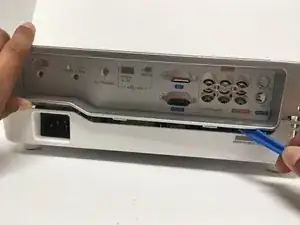 Переверните проектор и удалите пять винтов Phillips #1 размером 9.5 мм, которые крепят заднюю крышку, с помощью отвертки Philips #1 (PH1).