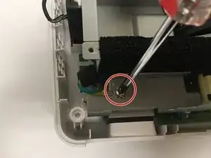 Ослабьте винт Phillips #1 (PH1) размером 2.5 мм, который удерживает верхнюю сборку на месте, с помощью отвертки Philips #1 (PH1). Это позволит вам поднять и снять верхнюю крышку.