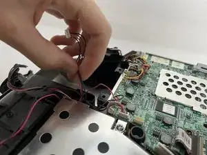 Вентилятор всё ещё будет подключён к проектору проводами. Мы отключим их на следующем шаге.