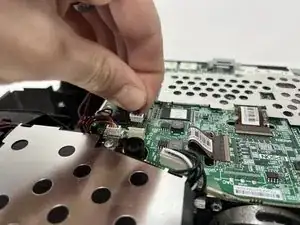 С помощью ногтя или другого тонкого монтажного инструмента отключите электрический шлейф от материнской платы.