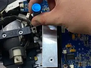 Используйте крестовую отвертку Phillips #1, чтобы выкрутить три 6 мм винта на металлической крышке рядом с лампой.