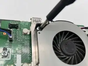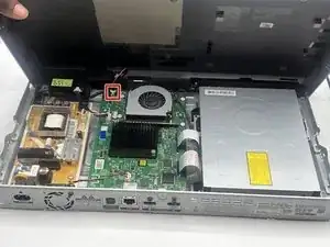 Осторожно отсоедините кабель от вентилятора к плате, потянув за кабель, соединяющий вентилятор с платой.