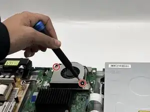 Удалите оба винта диаметром 10 мм с вентилятора, используя отвертку Phillips #0.