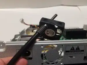 Вентилятор теперь свободен от винтов и провода и может быть легко извлечен из корпуса.