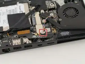 После удаления винтов аккуратно отсоедините многоцветное проводное соединение от материнской платы.