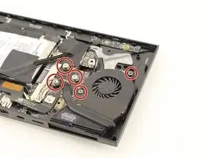 Два из винтов находятся прямо над вентилятором/распределителем тепла. Другие три винта расположены на маленькой треугольной пластине с левой стороны вентилятора/распределителя тепла.
