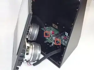 Используйте пинцет или руки, чтобы осторожно отключить красные провода, соединяющие динамики с платой питания.