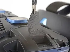 Этот винт закрыт наклейкой. Проткните наклейку отверткой, чтобы добраться до винта.