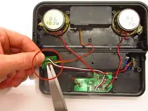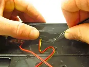 Поочередно разместите новые провода входа iPod/iPhone в их прежних местах на плате Line In. Оберните полоску припоя вокруг точки контакта между платой и проводом.