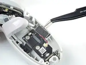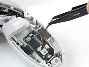 Вставьте одну лапку пинцета между вибромотором и контроллером.