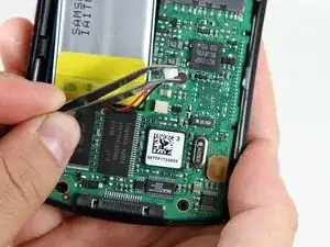 Используйте пинцет, чтобы осторожно вытянуть вибромотор от передней панели.