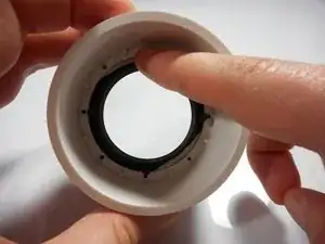 Пальцем аккуратно выдавите линзу из её белого корпуса.
