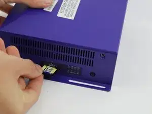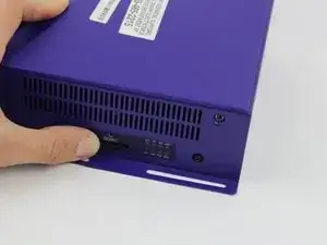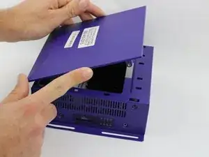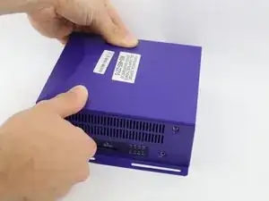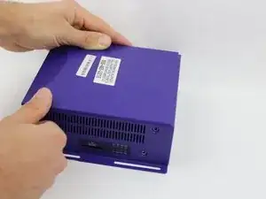 Нажмите на верхнюю крышку устройства и сдвиньте ее к себе, пока не появится небольшая щель.