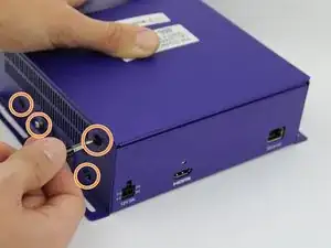 Удалите четыре винта по 8 мм с правой стороны устройства.