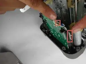 Отключите жгут проводов, который соединяет лампочки и печатную плату, разъединив два пластиковых разъема.