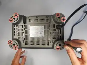 Удалите восемь винтов по 8 мм на каждой ножке тостера, используя отвертку с треугольным наконечником Y1.