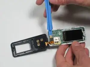 Переверните устройство и осторожно с помощью пластикового лопаточного инструмента пройдитесь по основанию передней крышки корпуса, пока она не ослабнет.