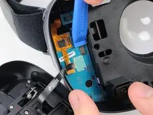 Удалите четыре винта Phillips #000 длиной 5 мм, крепящих пластину на левой стороне гарнитуры.