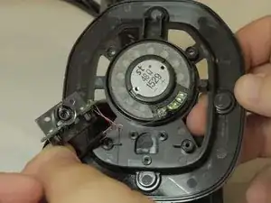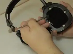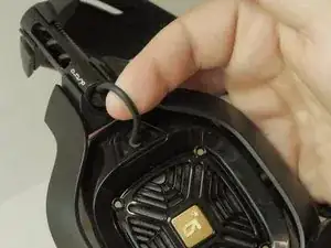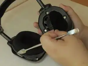 Чтобы получить доступ к динамикам, необходимо разобрать наушник. Сначала снимите поролоновую накладку, просто сжимая обивку и потянув слегка, пока магниты не освободятся.